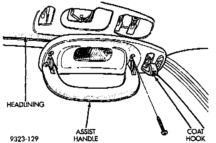 2. Remove screw holding assist handle to roof from behind coat hook.