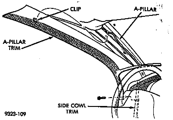 1. Remove screw holding top of side cowl trim to A-pillar.