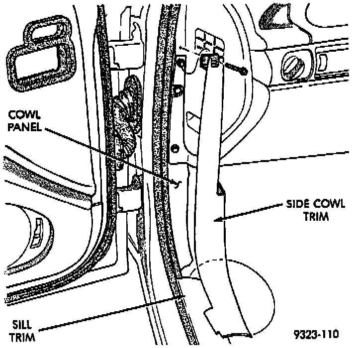 2. Remove door sill trim as necessary to clear cowl trim removal path.
