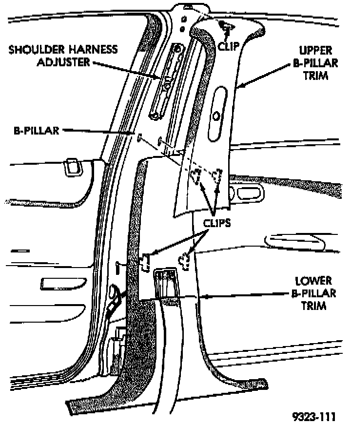 3. Remove access door from above seat belt slot on B-pillar trim.