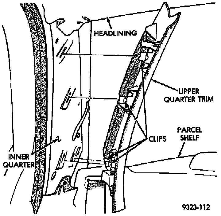 1. Disengage clips holding upper quarter trim to inner quarter panel.