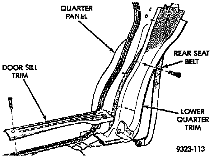 2. Install screws to hold lower quarter trim to inner quarter panel.