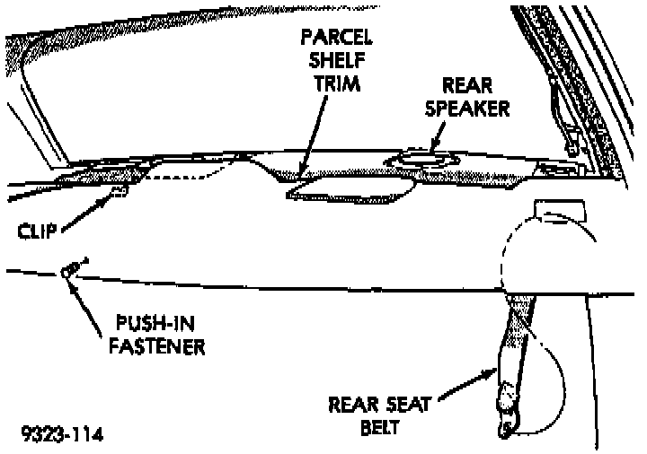 4. Push parcel shelf trim rearward toward rear glass and engage clips.