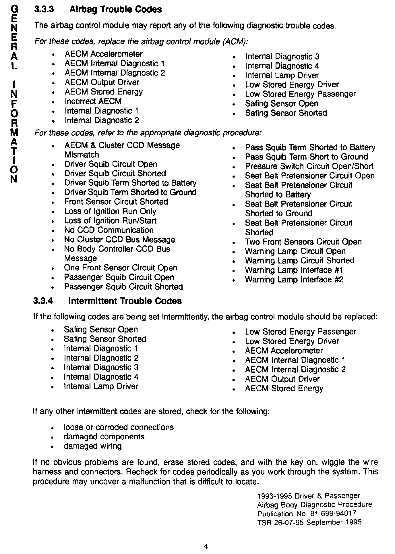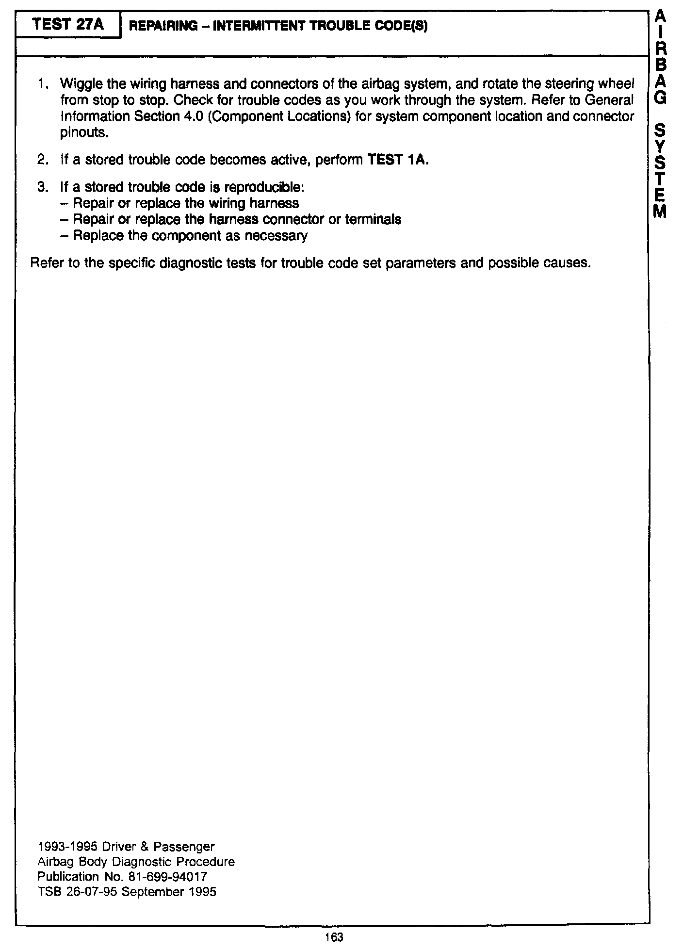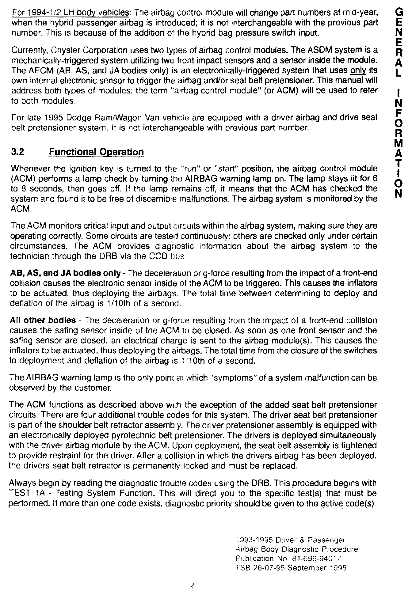 1993 - 1995 Driver and Passenger Air Bag Body Diagnostic Manual - Publication Number 81-699-94017