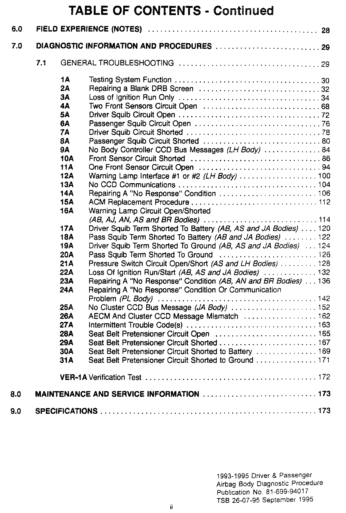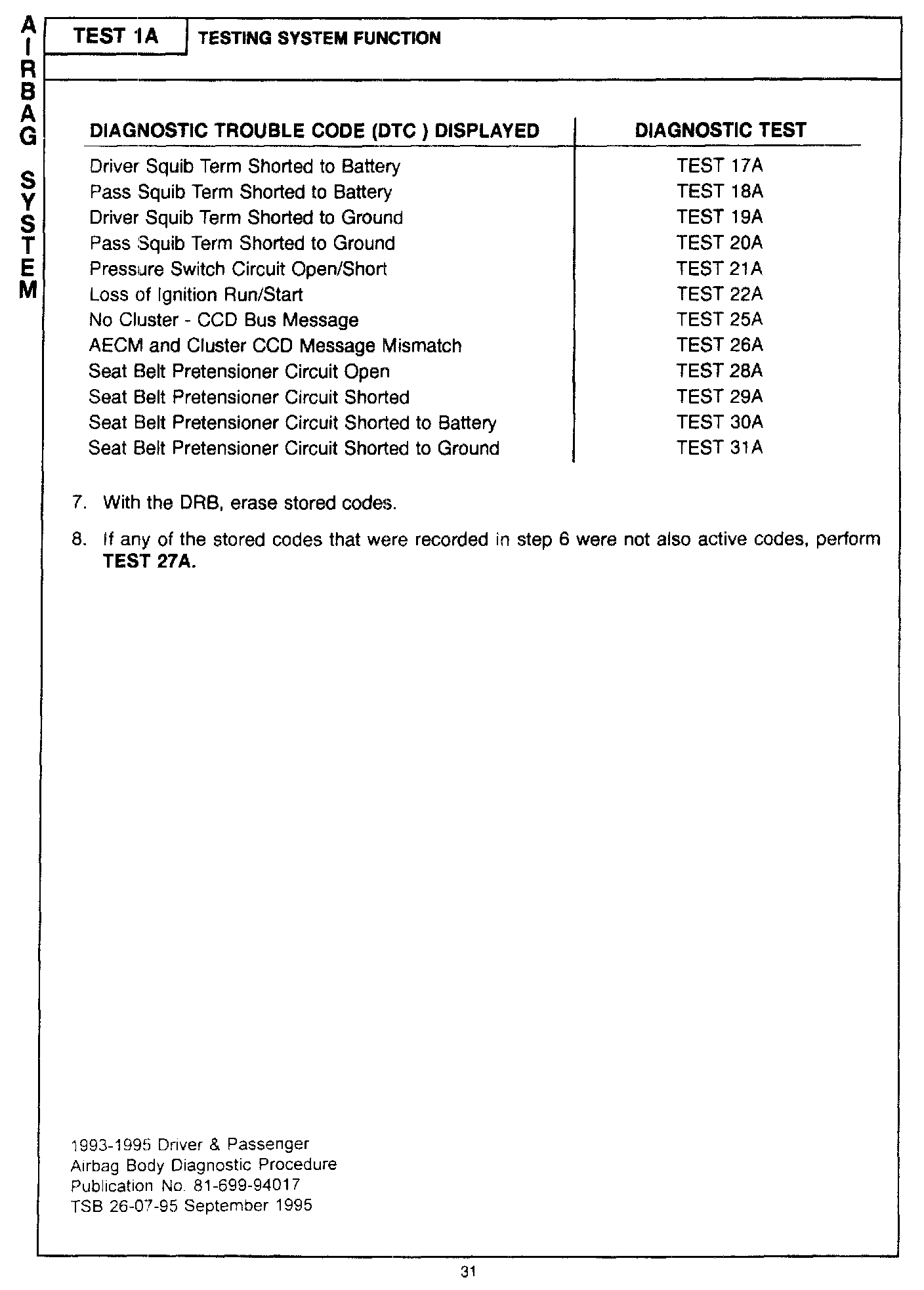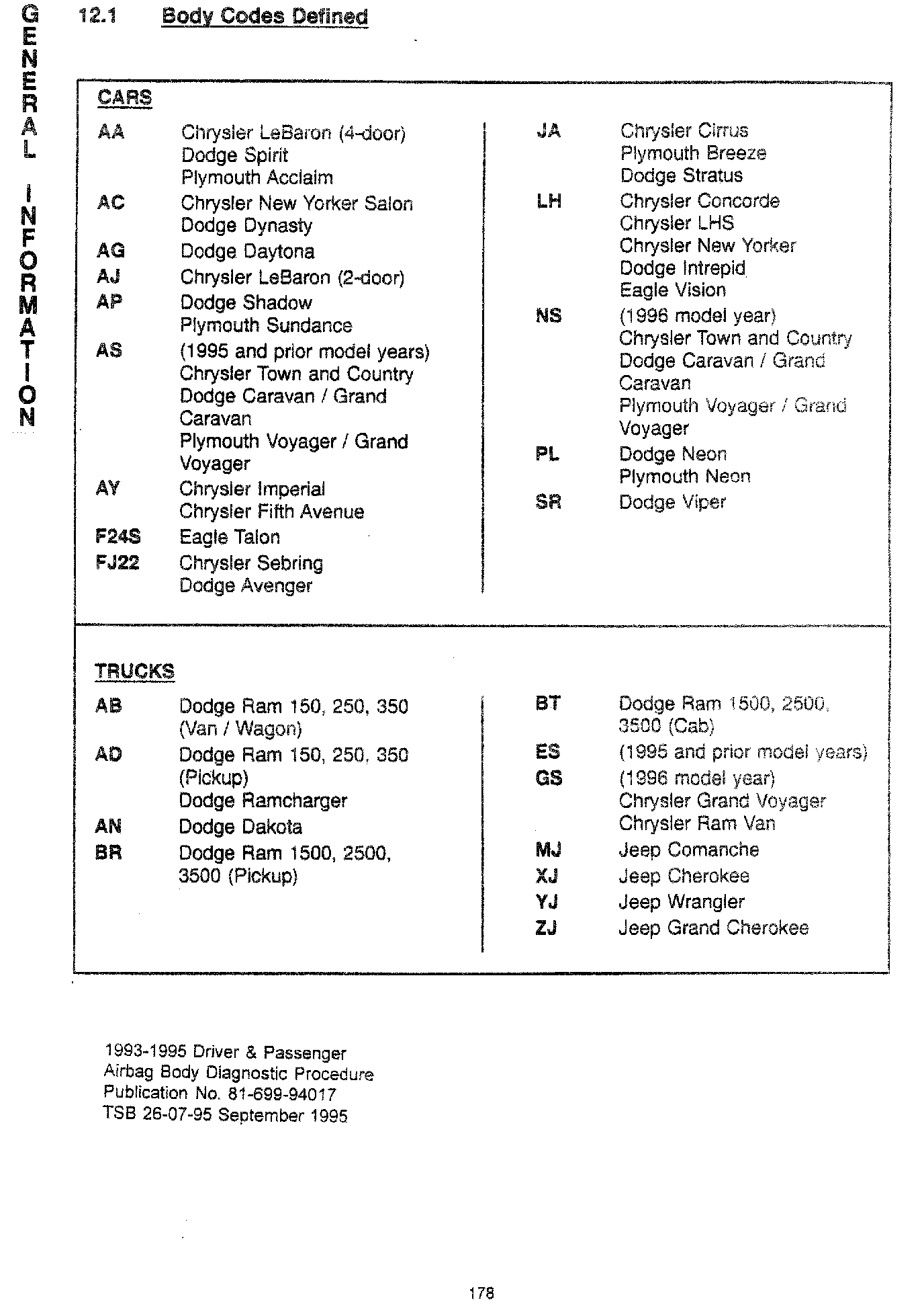 1993 - 1995 Driver and Passenger Air Bag Body Diagnostic Manual - Publication Number 81-699-94017