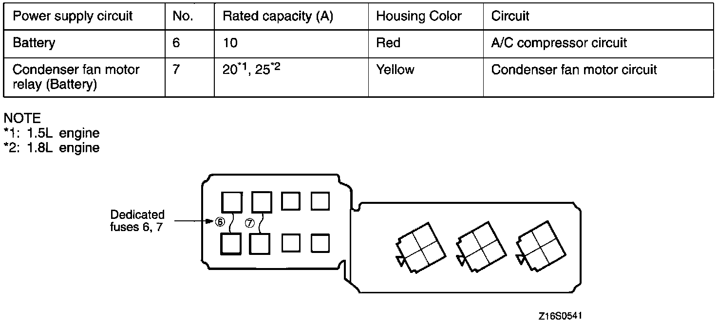 Dedicated Fuse 6 - 7 (A/C Compressor Clutch Relay Bracket In Engine Compartment):
