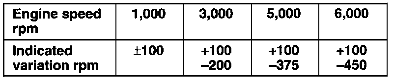 2. Connect the engine tachometer and compare the engine tachometer and tachometer readings. Replace tachometer if difference is excessive.