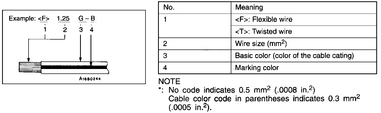If a cable has two colors, the first of the two color code characters indicates the basic color (color of the cable coating) and the second indicates the marking color.