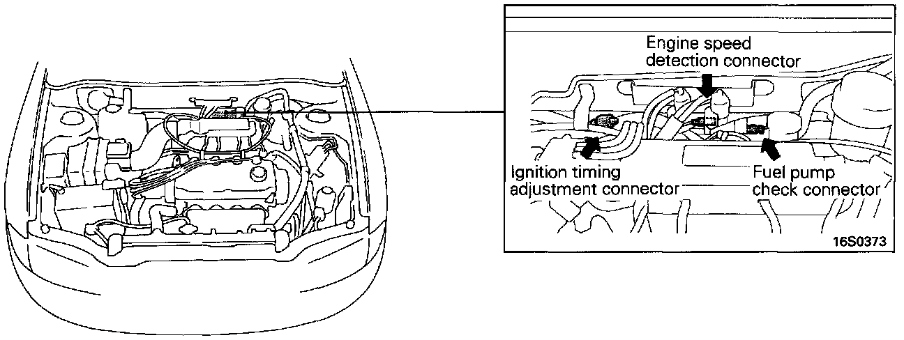 Engine Speed Detection, Fuel Pump Check, And Ignition Timing Adjustment Connectors: