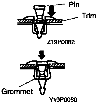 With the pin pulled out, insert the clip into the hole in the trim.
