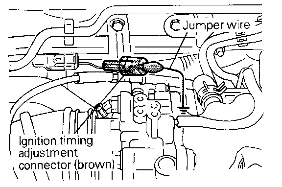 14. Stop the engine, remove the jumper wire from the ignition timing adjustment connector (brown), and return the connector to its original condition.