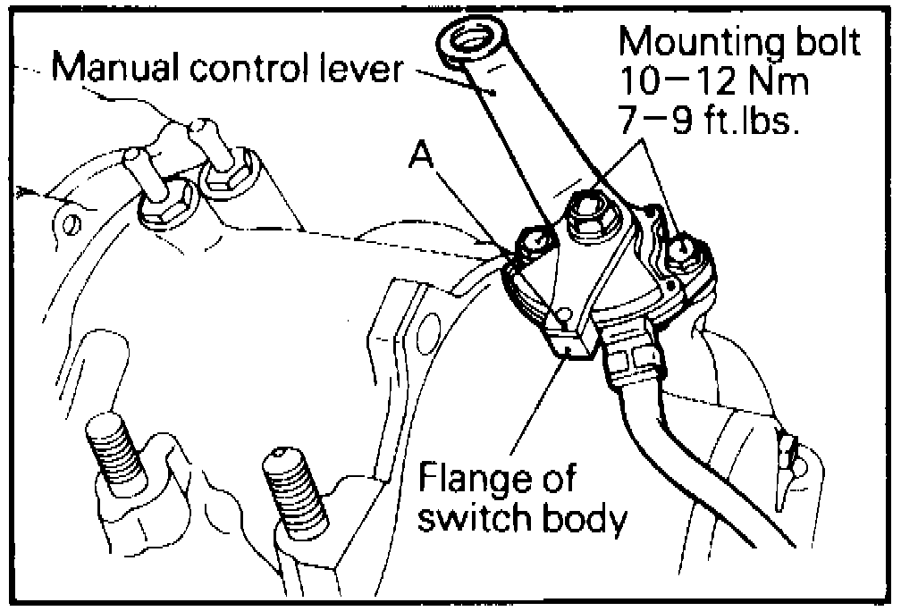 5. Install manual lever and torque retaining nut to 13-15 ft. lbs., then adjust switch as follows: