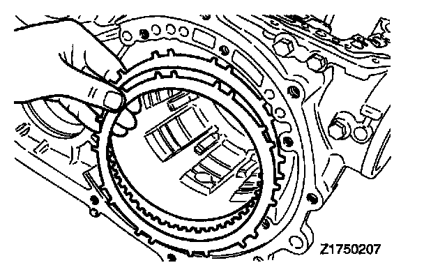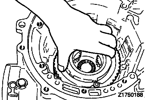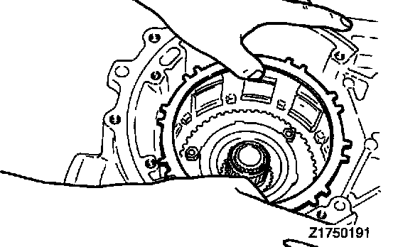 38. When putting the kickdown drum in the kickdown band, engage the splines of the kickdown drum with those of the reverse sun gear.