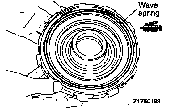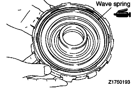 c. Apply petrolatum jelly to the wave spring and attach the wave spring on the low-reverse brake piston.