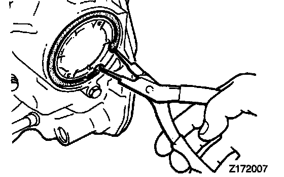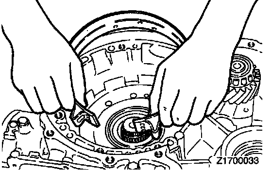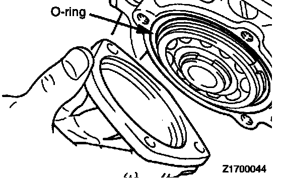 12. Install a new O-ring in the groove of the transaxle case, and then install the bearing retainer.