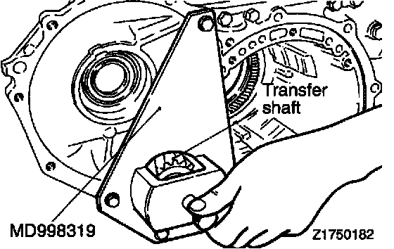 14. Mount the special tool on the transaxle case to support the transfer shaft.