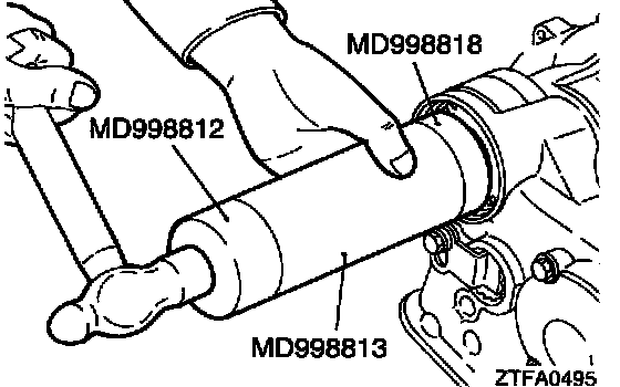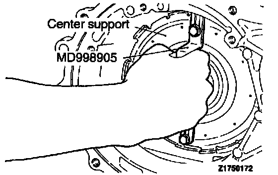 29. Attach the special tool to the center support and install the support in the transaxle case.