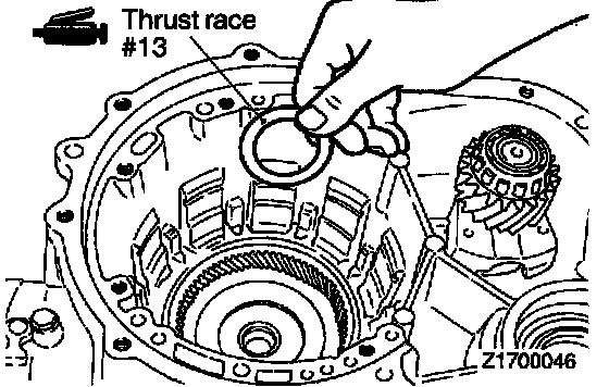 19. Coat thrust race # 13 with petrolatum jelly and attach it to the output flange.