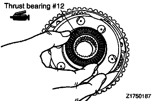 20. Apply petrolatum jelly to thrust bearing # 12 and secure the bearing on the planetary carrier.