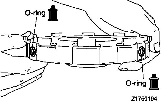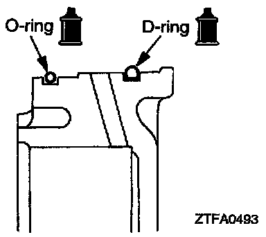 d. Install the two O-rings removed during disassembly and coat them with automatic transaxle fluid.