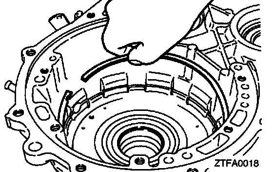 36. Insert the kickdown servo sleeve in the transaxle case and install the snap ring.