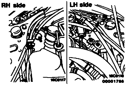 Remove the front combination light mounting screws from inside the engine compartment.