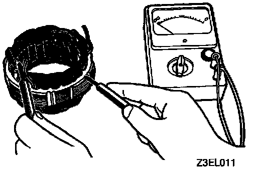 2. Check coil for grounding. Check to ensure that there is no continuity between coil and core. If there is continuity, replace stator assembly.