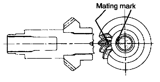 1. Install the transfer case and the drive bevel gear assembly and match the mating marks of the transfer case and the drive bevel gear shaft.