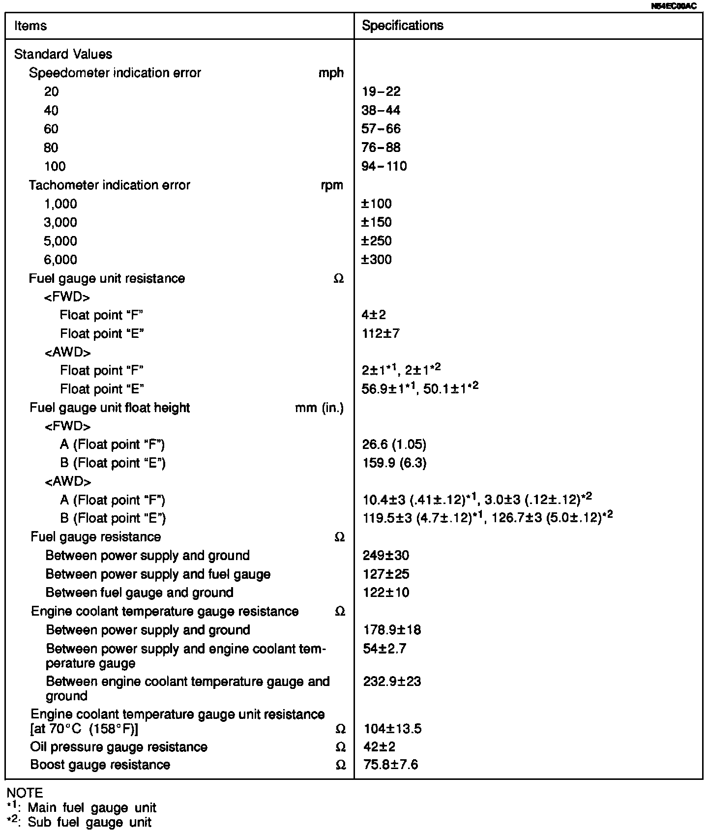 Instrument Panel, Gauges and Warning Indicators: Specifications