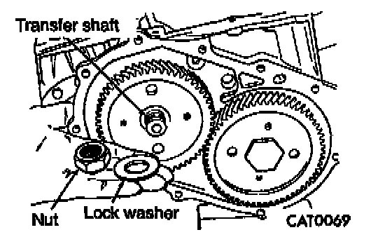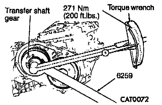 51. Tighten transfer shaft gear nut to 271 Nm (200 ft.lbs.) while holding transfer shaft gear with Holder 6259.