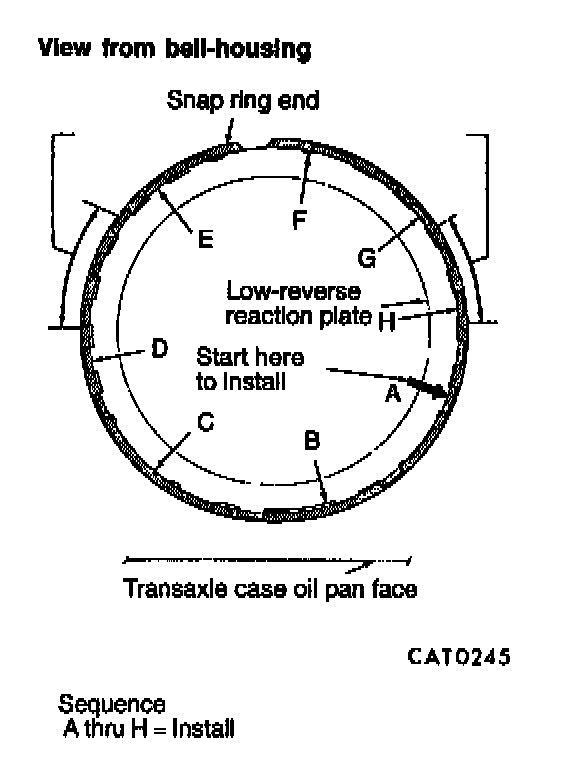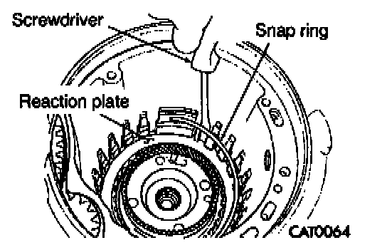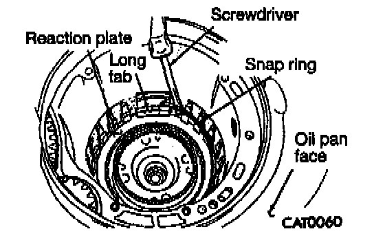 55. Using a screwdriver, install low/reverse reaction plate flat snap ring.