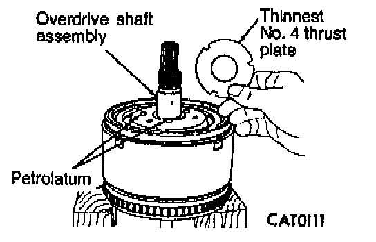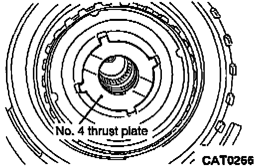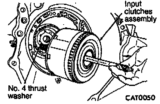 70. To determine the proper thickness of the No.4 thrust plate, select the thinnest No.4 "test" thrust plate. Using petrolatum to hold thrust plate in position, install input clutches assembly. Be sure the input clutches assembly is completely seated.