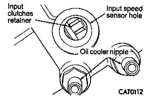 CAUTION: If view through input speed sensor hole is not as shown above, the input clutches assembly is not seated properly.