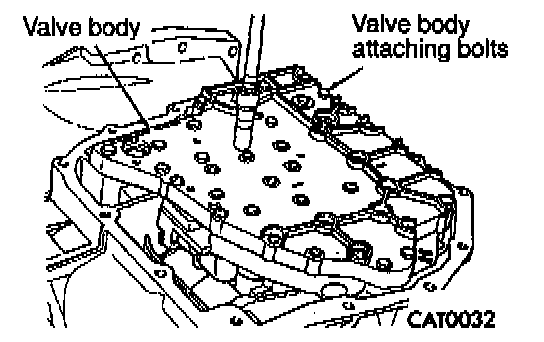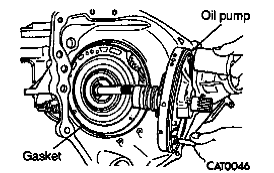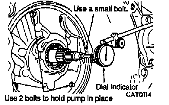 CAUTION: Be sure to install O-ring on oil pump after selecting the proper No.4 thrust plate. Temporarily secure oil pump with 2 oil pump bolts. Insert a small bolt into end of input shaft. Measure input shaft end play. If end play readings are not within specifications, the transaxle assembly will be damaged.