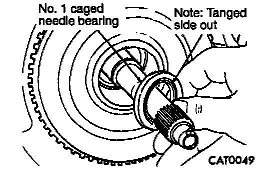 75. Install No.1 caged needle bearing with its tanged side facing out.