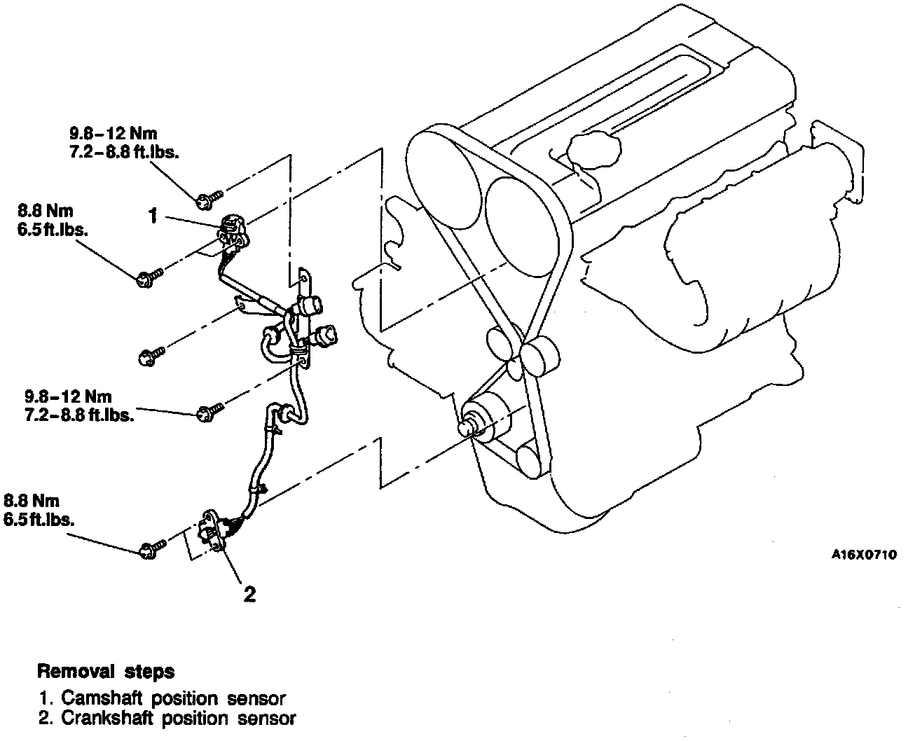 5. Reverse steps to reassemble, torqueing sensor bolts to values shown in the illustration.