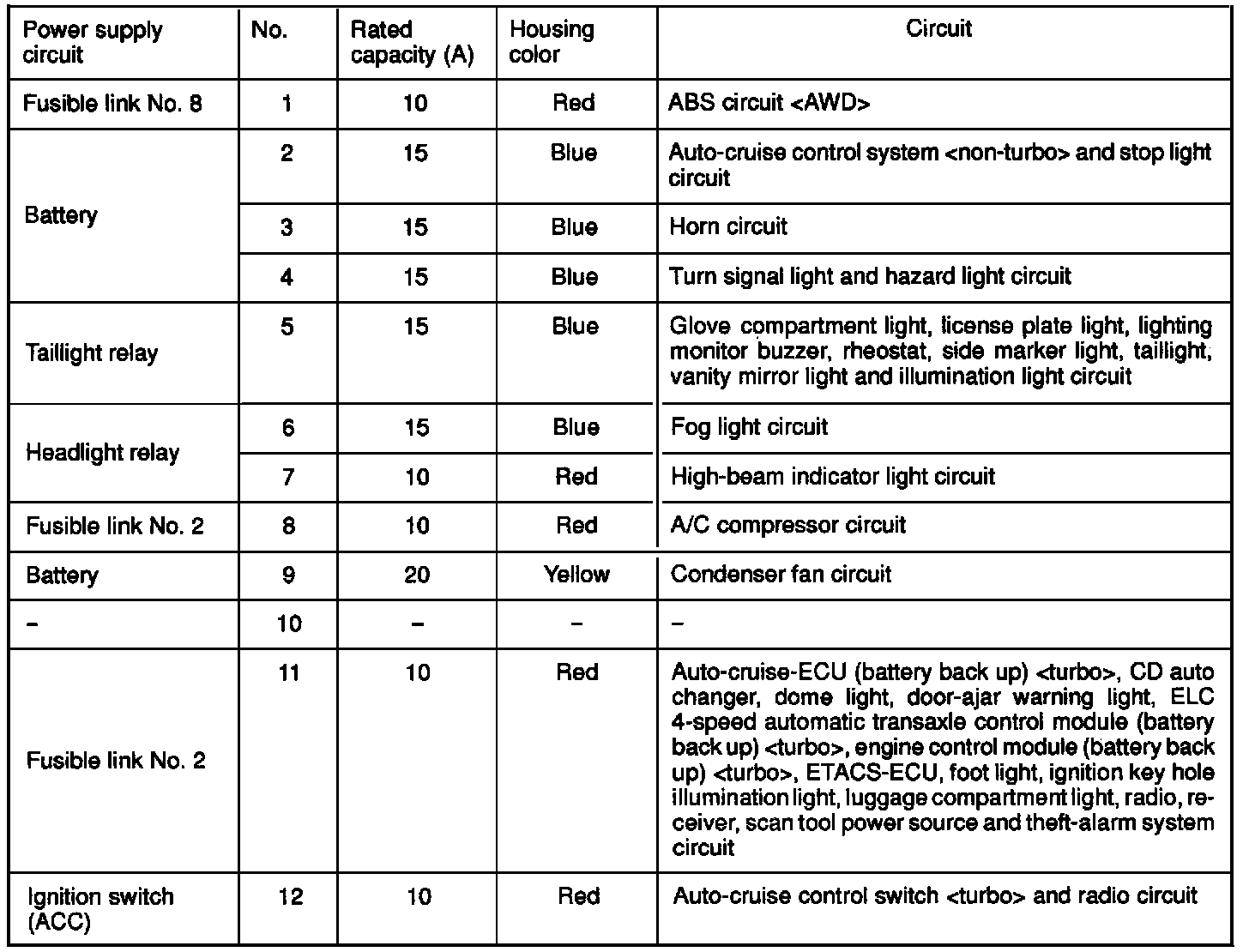 Dedicated Fuses (Relay Box In Engine Compartment):