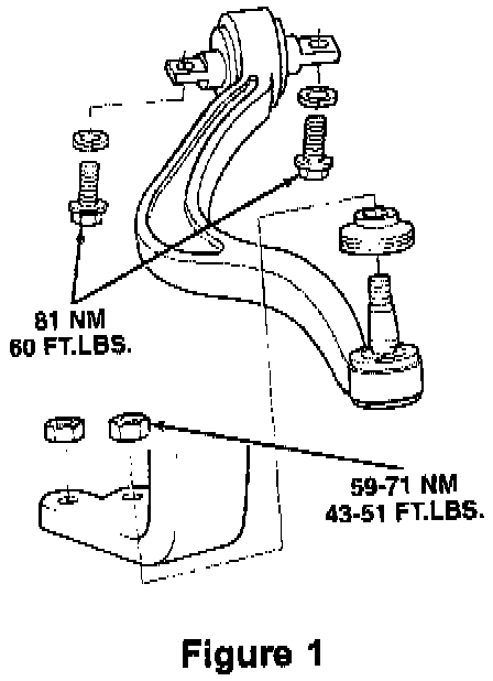 2. Following the procedure, the Caution, and the Removal Service Points listed in the applicable Service Manual. Remove both the right and left compression arms for drift right or the left only for drift left (Figure 1).