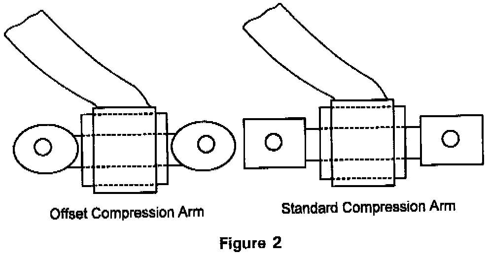 3. Install the new compression arm assembly(ies) in the reverse order. The offset arms have rounded ends and the standard arms have square ends (Figure 2).
