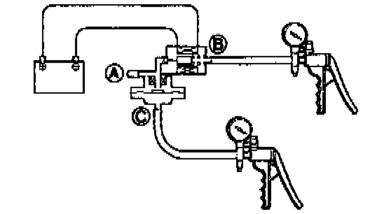 5. Connect a positive pressure type hand pump to the nipple (C).
