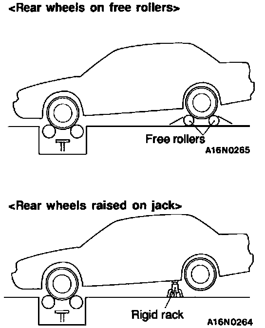 3. Set free rollers securely on the floor according to the wheelbase and rear tread of the vehicle (when rear wheels are to be set on free rollers).