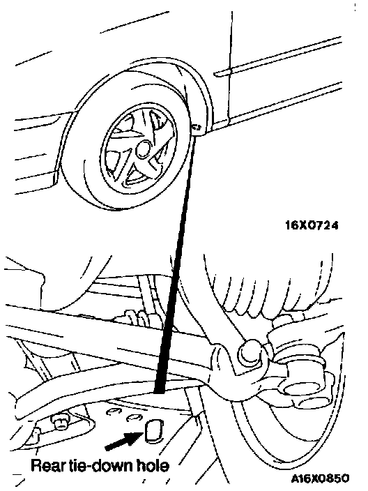 6. Attach a chain or wire to the rear tie-down holes. Secure the end of the wire or chain.