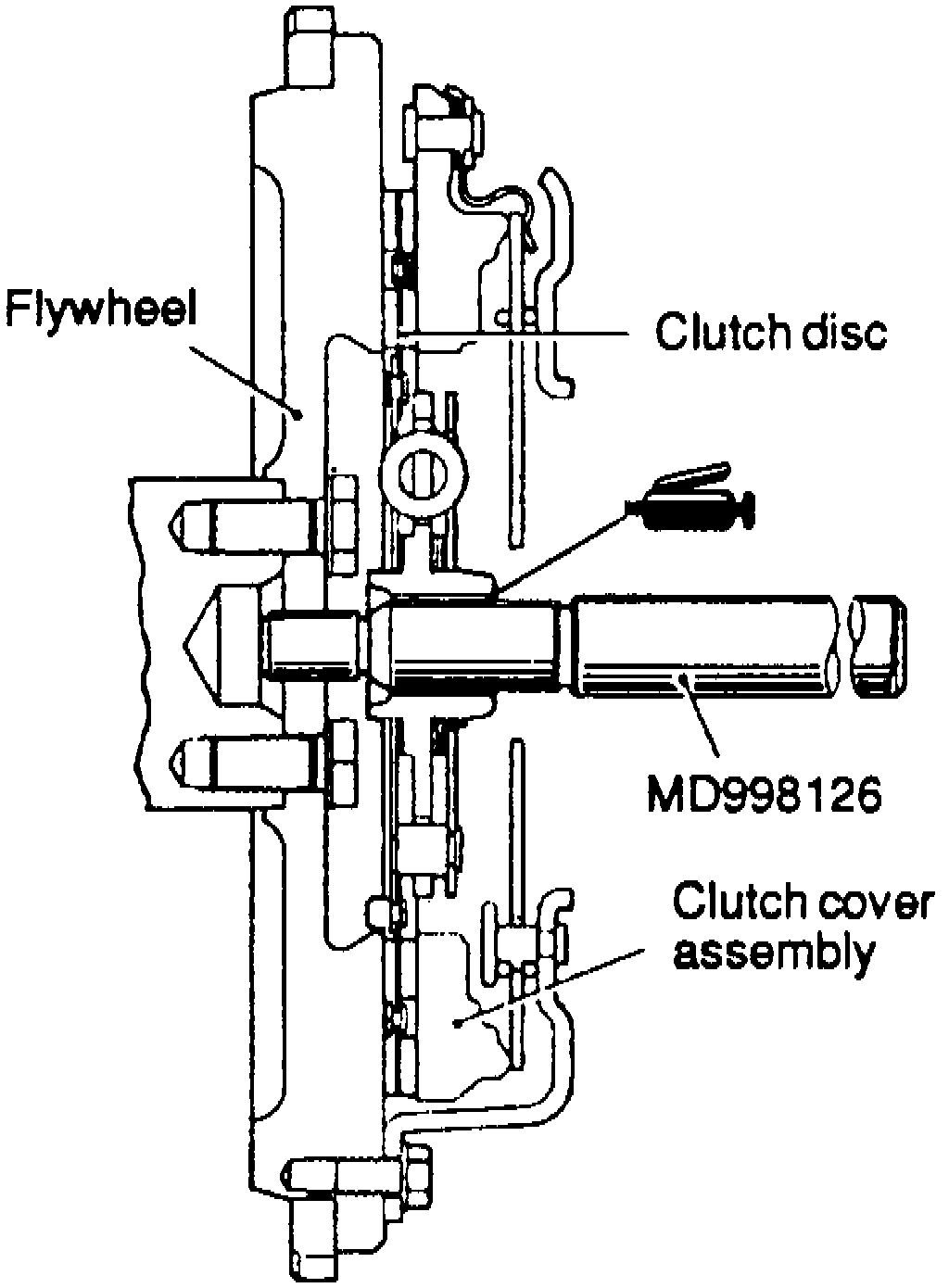 5. Reverse procedure to install. Use special clutch positioning tool No. MD998126, or equivalent, to install clutch disc on flywheel.