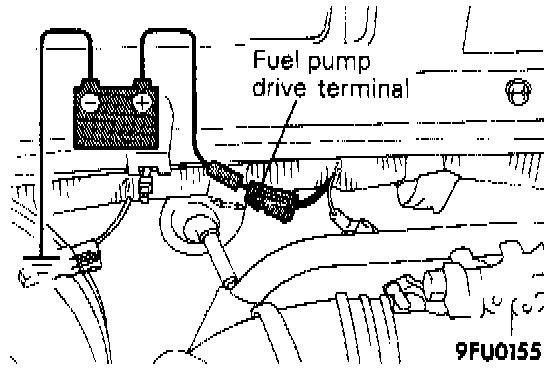 a. Apply the battery voltage to the fuel pump drive terminal to drive the fuel pump.
