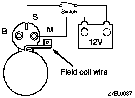1. Disconnect field coil wire from M-terminal of magnetic switch.