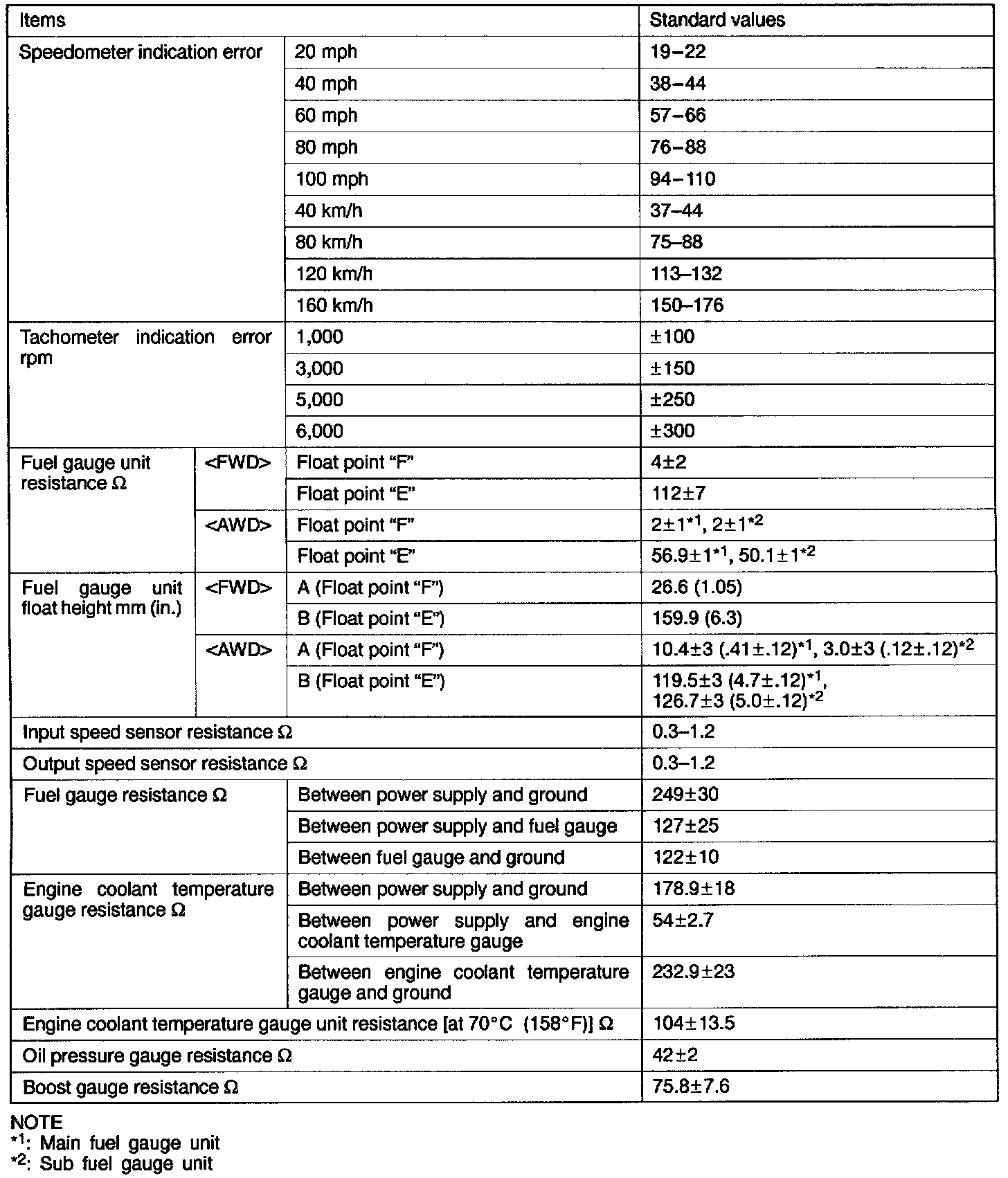 Instrument Panel, Gauges and Warning Indicators: Specifications