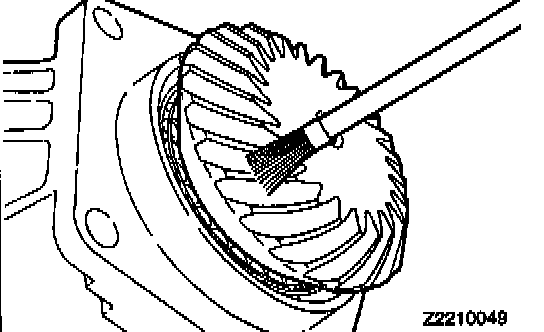 Apply a light and uniform coat of machine blue or red lead to the driven bevel gear teeth (both sides) using a brush.