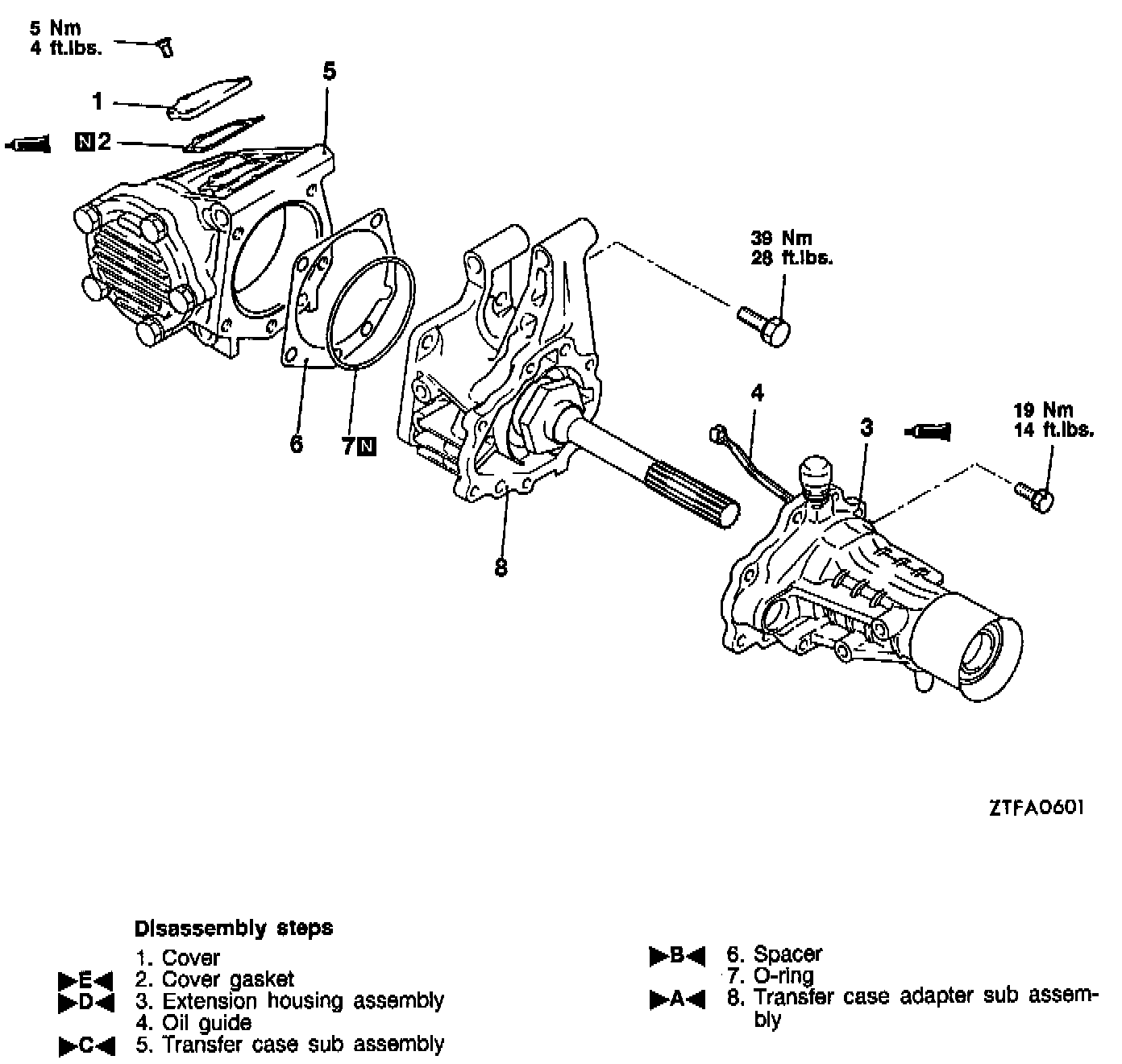 Transfer case adapter mounting bolt: 39 Nm (28 ft.lbs.)