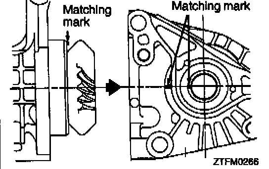 1. With the matching marks in alignment, install the transfer case adapter sub assembly to the transfer case sub assembly.