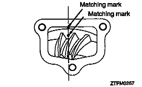 4. Check that the driven bevel gear and transfer case matching marks are in alignment.